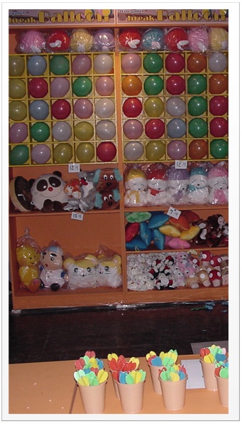 스포츠게임기를 개발하는 오이랜드 게임장에서 영업용으로 설치 가능한 타트 게임은 전자다트와 풍선다트 두 종류다. 게임이 끝나면 풍선을 불어서 풍선공기주입기기계사용 꼽아야하는 번거로움이 있지만 사진은 전기를 사용하지 않는 수동 풍선다트다 오이랜드에서는 수동 풍선다트를 진화시켜 점수가 숫자로 올라가게 하고 풍선이 터질 때와 불발일 때를 구분해 조명과 사운드를 삽입해 풍선다트에 새로운 생명을 불어 넣었다또 지폐기를 장착해서 매상체크가 가능하도록 했으며, 라운드가 계속될 때마다 요금을 계속투입해 더 큰 상품에 도전하도록 매출증대 프로그램을 실현했다 |
